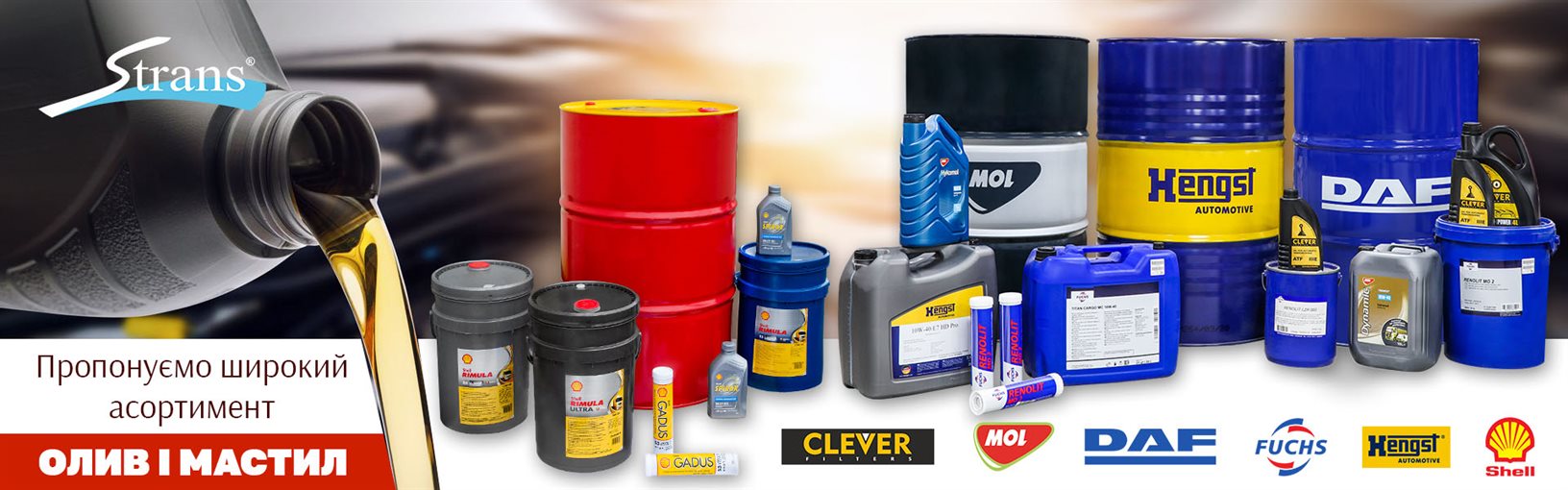 Компанія Strans є учасником професійних, міжнародних виставок, де проводиться укладання угод про співпрацю зі світовими лідерами ринку автозапчастин, техобслуговування і обладнання автомобілів. Тому асортимент в представлених категоріях, завжди оновлений, актуальний і якісний. Інтернет-магазин запчастин для вантажівок компанії Strans має всі ресурси для ліквідації будь-яких неполадок автобусів, тягачів, причепів та іншої автотехніки.
