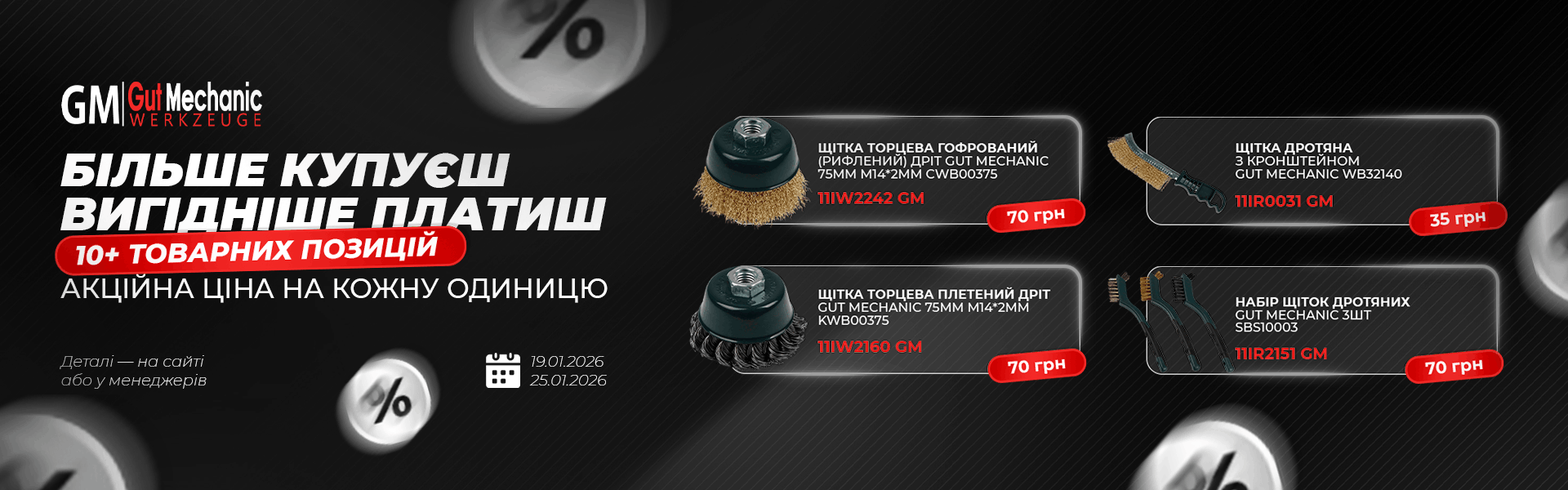 Акція на щітки Gut Mechanic