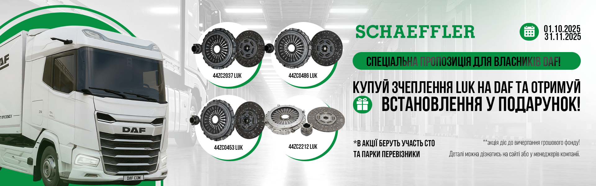 Пропозиція діє в рамках партнерської програми Schaeffler для СТО, автопарків та перевізників, які працюють із технікою DAF.