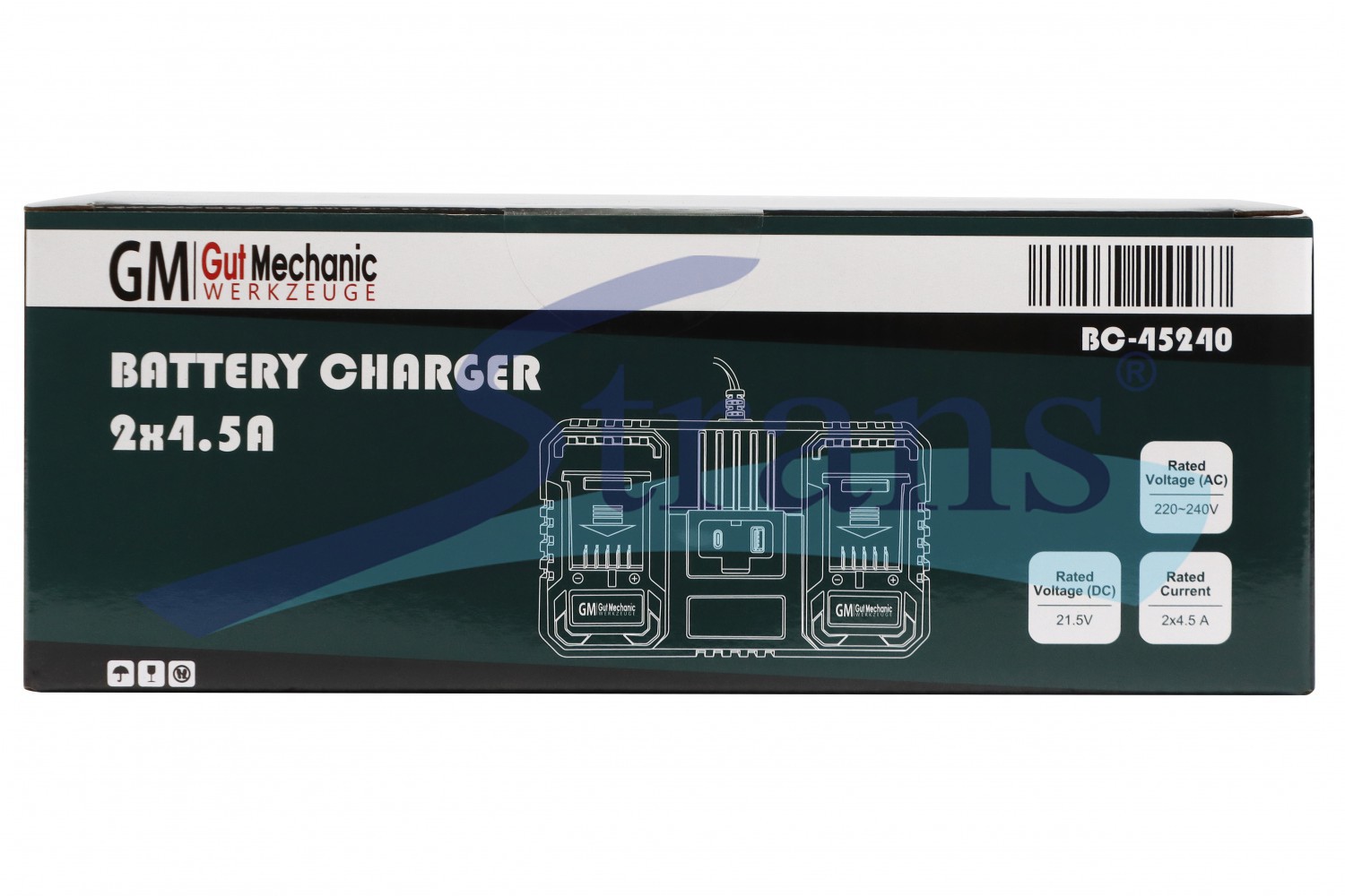 Зарядний пристрій для акумуляторів 20V GUT MECHANIC BC45240 (подвійний, 2?4.5A) — це професійне рішення для швидкого та ефективного заряджання акумуляторів у режимі інтенсивної роботи. Пристрій розроблений для майстрів і сервісних бригад, яким важливо мінімізувати простої інструменту та постійно мати готові до роботи батареї.