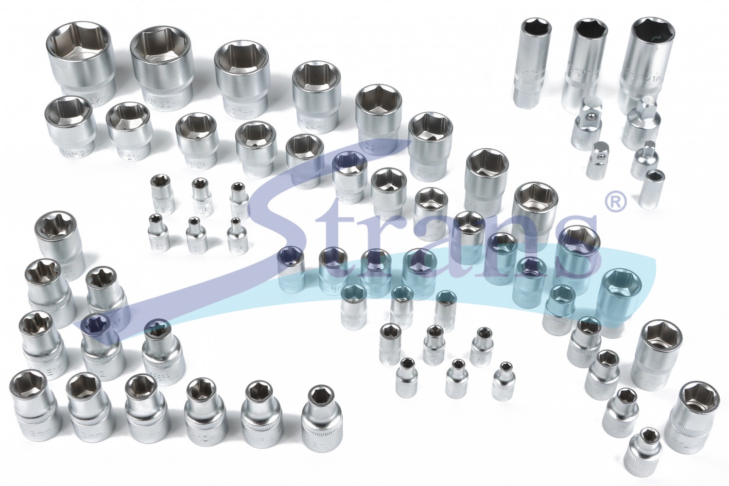 Цей набір містить торцеві головки різних розмірів із шестигранними профілями, свічними головками та подовжувачами, що забезпечує універсальність і зручність для будь-яких ремонтних робіт.