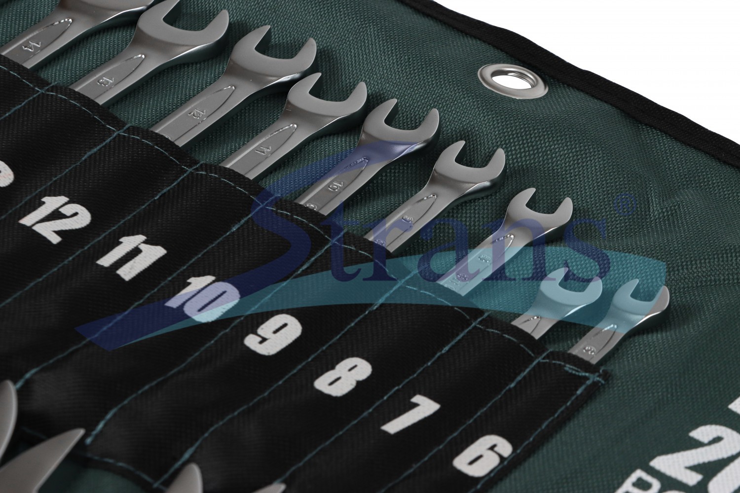 Набір постачається у зручній текстильній плахті з маркуванням розмірів, що дозволяє компактно зберігати інструмент і швидко знаходити потрібний ключ.